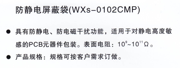 WX-s-0102CMP防靜(jing)電屏蔽袋