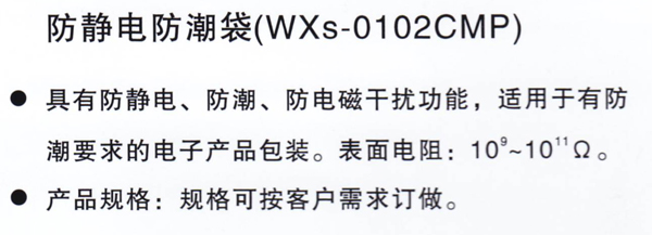 WX-s-0102CMP防靜電屏蔽(bi)袋